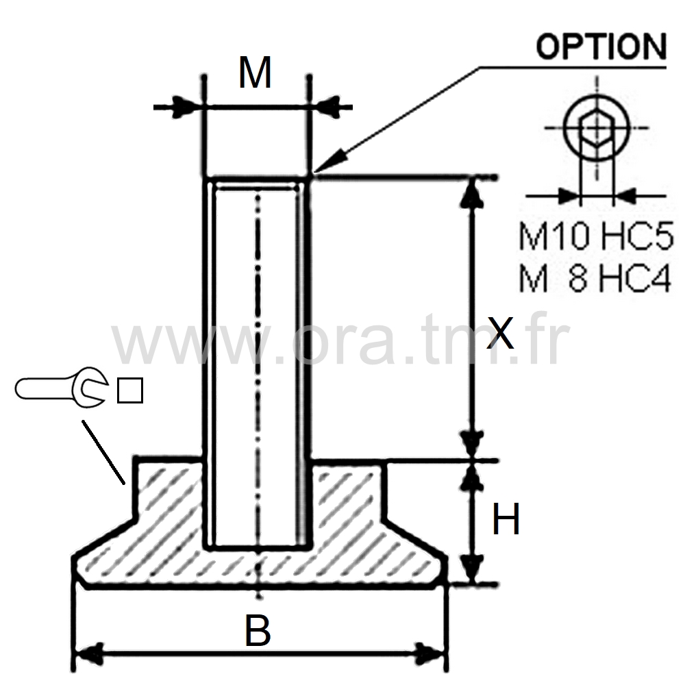 Lors du couplage avec une insertion, le vérin doit être vissé complètement sur celle-ci avant l’emmanchement dans le support.
