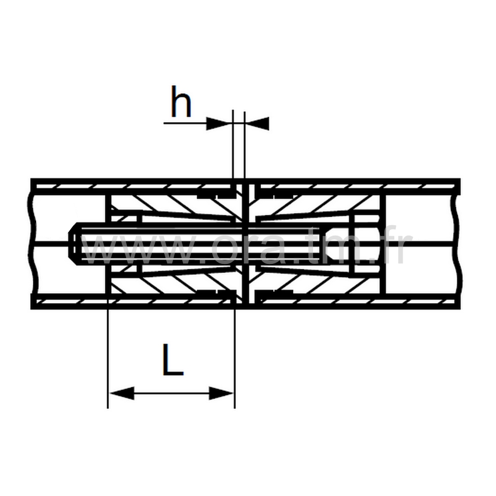 EXPANSOR Le vissage de l'écrou qui effectue le serrage jusque dans la partie conique qui prolonge la cavité hexagonale de nos manchons Expansor augmente les caractéristiques d'ancrage (effet cheville) contre la paroi intérieure du tube. La capacité de tenue dépend également de la qualité du tube utilisé (tolérance dimensionnelle, rugosité interne, cordons de soudure, etc.) ainsi que du couple de serrage. Dans ce contexte, nous recommandons d'effectuer vos propres essais afin de connaître les conditions précises de résistance et de charge limite de votre construction afin d'en sécuriser les conditions d'utilisation.